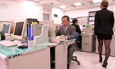 Asian office slut with gigantic inborn tits pleases a coworker